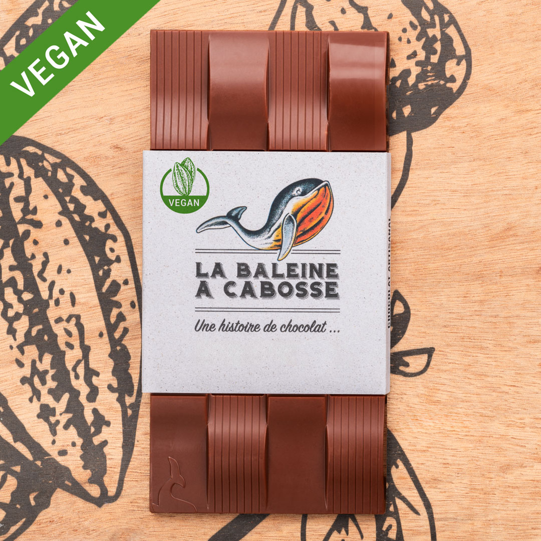 Chocolat au lait 45% de cacao : Poudre de lait de coco, beurre de cacao, sucre bio français, cacao