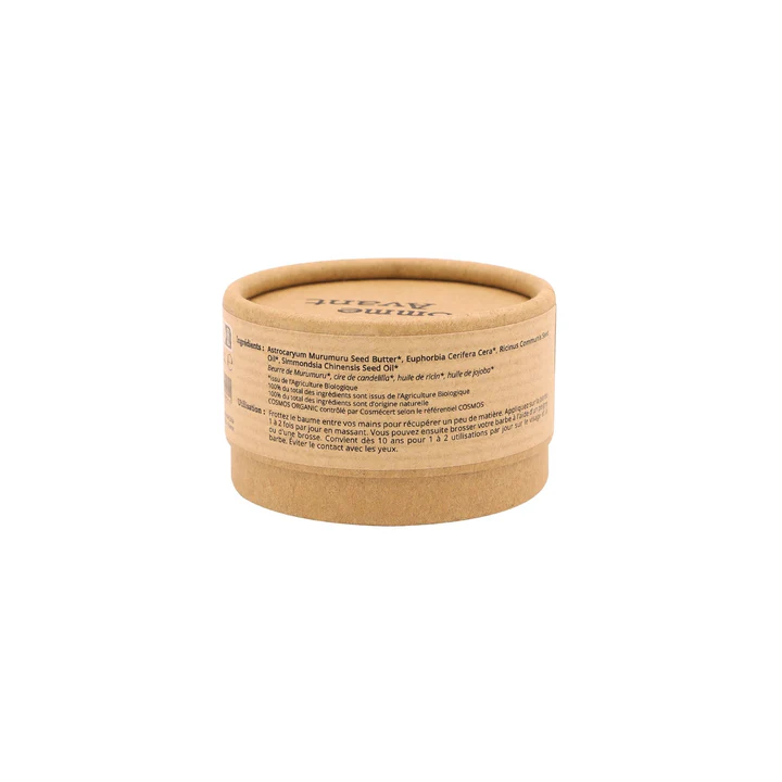 Ingrédients Composition courte : beurre de Murumuru, cire de candelilla, huile de ricin, huile de jojoba, et huiles essentielles pour les versions parfumées