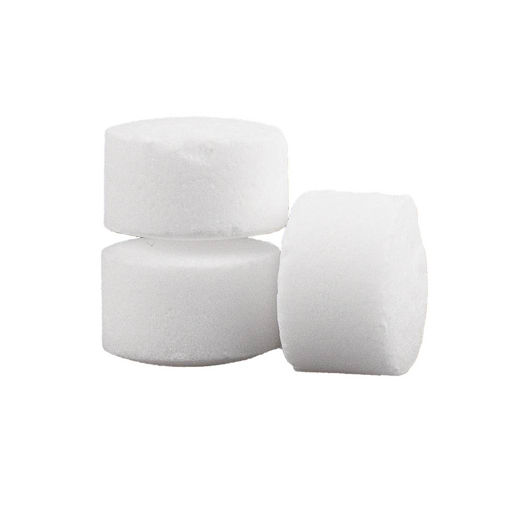Composition : 100% Chlorure de sodium. Pastilles cylindriques de 2,5 cm x 1,5 cm.